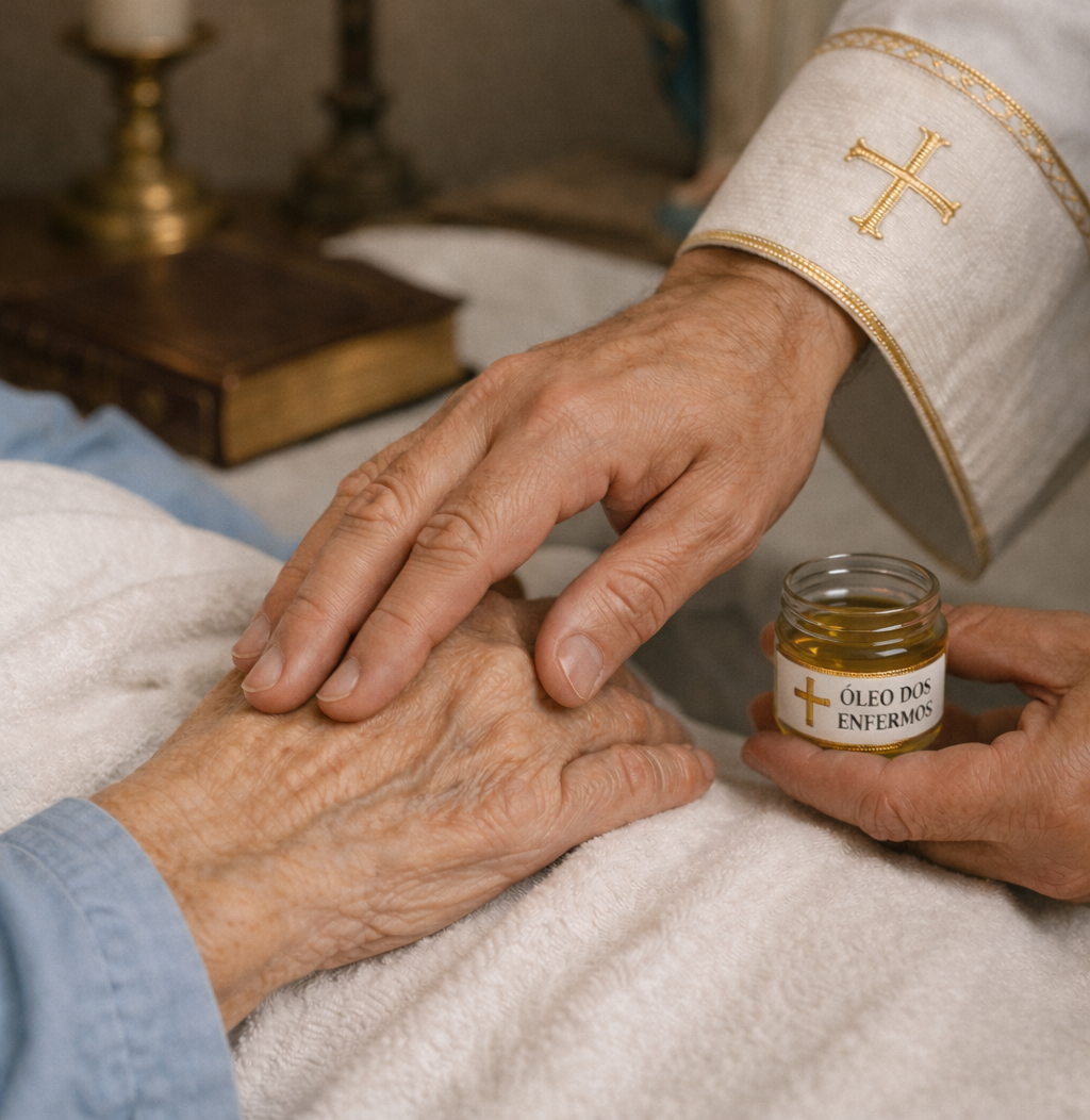 Pela unção com o óleo dos enfermos e a oração dos Padres, a Igreja toda entrega as pessoas doentes aos cuidados do Senhor sofredor